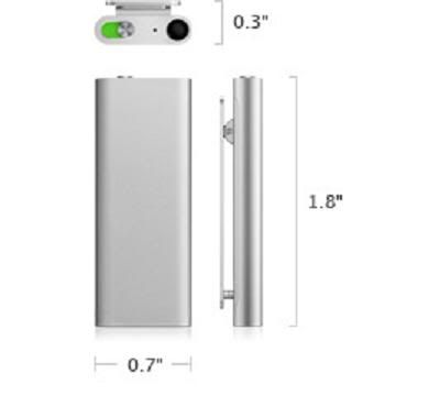 Specs: Weight: 0.38 ounce (10.7 grams) 4GB flash drive Holds up to 1,000 songs in 128-Kbps AAC format Playback time: Up to 10 hours when fully charge